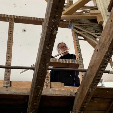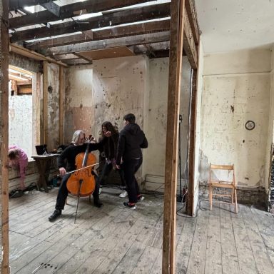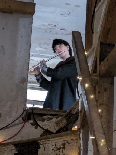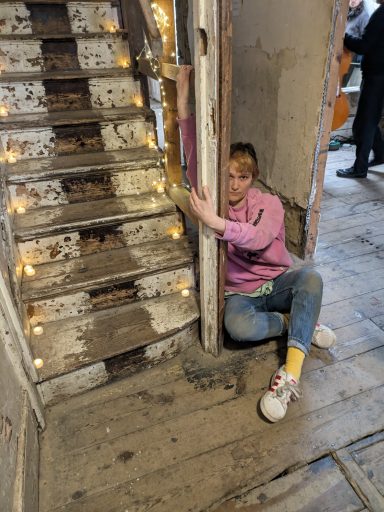 When lockdowns ended and in-person events became possible again I presented Ouroboros as an installation and performance at Safehouse 1, Peckham for the final presentation for my PhD. Safehouse being a derelicy Victorian terrace house this fitted in with the domestic theme that underlines the project. It ran in the afternoon as an 8-channel sound installation, with images and lights on the walls nd Carla's contrabass flute present as an object, and then in the evening evolved into a performance with dancers, musicians, and finally the audience all joining in: a dissolving of the roles of artist/performer/audience into a community.